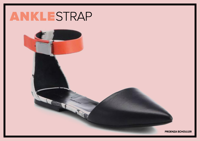 Keeping with the ballet look, the simple ankle strap is big this season. You will often find it at the very tip of a pair of flats or a chunky heeled shoe as a simple accent to finish off the look. Or you may find a statement shoe with a thick ankle strap or even two. Of course, you can hide the strap underneath a pair of trousers, but it looks best when worn with a dress or skirt, showcasing it’s beauty.