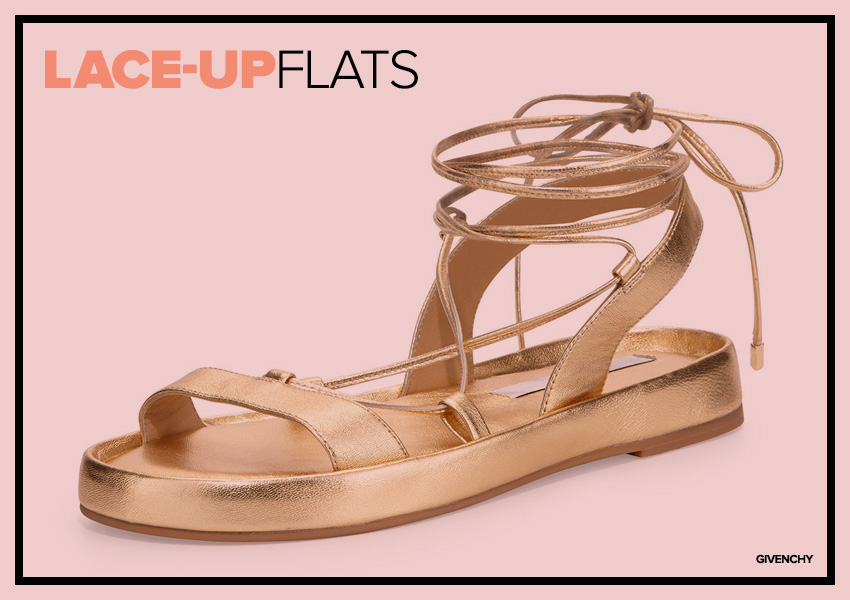 This trend takes the ballerina flat to a whole new level. With laces criss crossing up the middle and sometimes around the ankle, they will have you feeling like a gorgeous dancer. They are very practical and will never fall off your feet, but they also pair well with almost any outfit — from skinny jeans to a skater skirt.