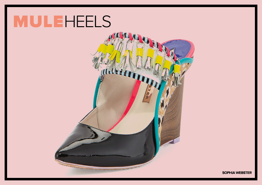 Making a comeback from decades past, the mule has been seen on celebrities everywhere. They’re most popular in neutral tones, but make a real statement in a bright colour. Whether peep toes or closed and pointy, this shoe is comfortable and fashion-forward.